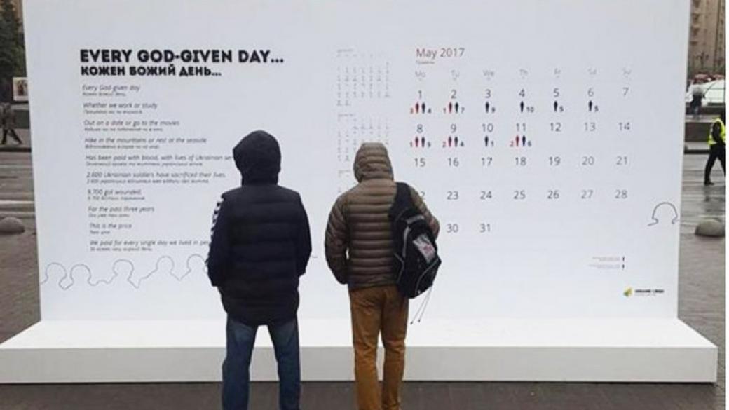 «На Крещатике покажут календарь потерь украинских бойцов. Идея календаря „Каждый Божий день…“ — показать, какой ценой обходится каждый наш мирный день», — сказано в публикации.