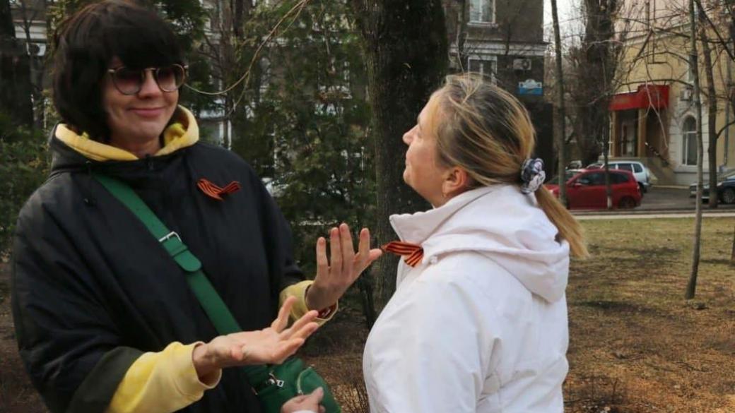 По информации ресурсов, сегодня на улицах неподконтрольного Украине Донецка и других городов ОРДО активисты местной «общественной организации» «Молодая Республика» проводили акцию «Георгиевская лента» и раздавали прохожим георгиевские ленточки и листовки.