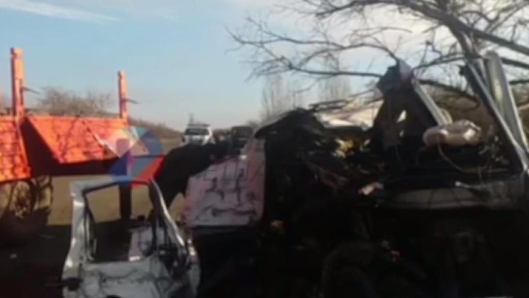 Во временно оккупированном Шахтёрском районе Донецкой области при столкновении российского грузовика и пассажирского микроавтобуса погибло 16 человек.