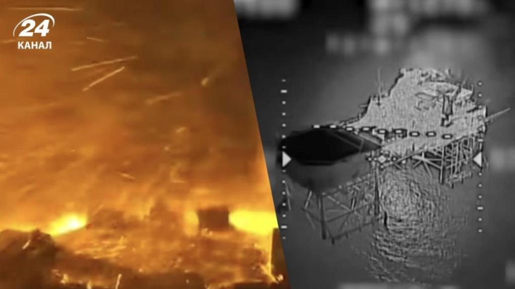 Также Алексей Неижпапа показал кадры работы украинских морских дронов. На видео видно сильный пожар в результате атаки.