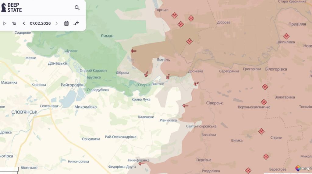 По данным аналитиков, россияне пытаются взять поселок Ямполь в "кольцо" и движутся в направлении Лимана.