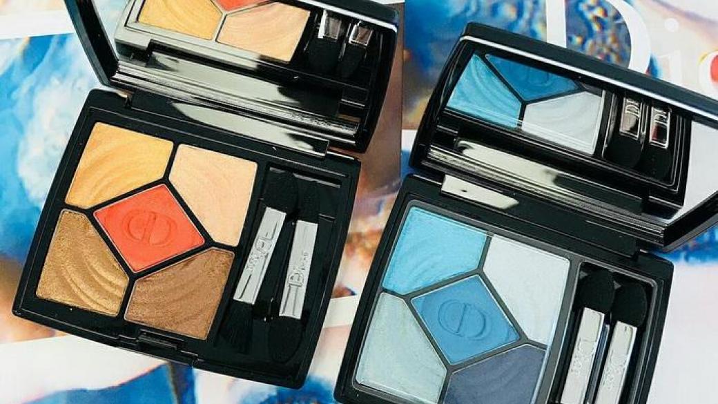 - Палетки теней Dior Cool Wave 5 Couleurs Eyeshadow Summer 2018 на 5 цветов каждая — одна выполнена в песчано-солнечных ярких оттенках, вторая — в оттенках воды. Тени имеют рельефный узор, похожий на круги по воде.