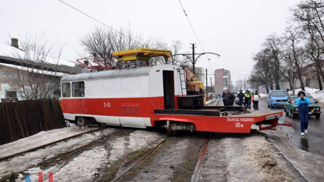 Сегодня днем в оккупированном Донецке на улице Дмитрова в Буденновском районе сошел с рельсов трамвай.