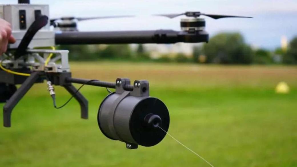 Разработка разворачивается перед позициями или защищенными объектами на расстоянии до 500 метров и формирует рубеж перехвата дронов. Когда беспилотник пролетает над этой системой, его оптоволоконный кабель разрывается, из-за чего он мгновенно теряет управление.