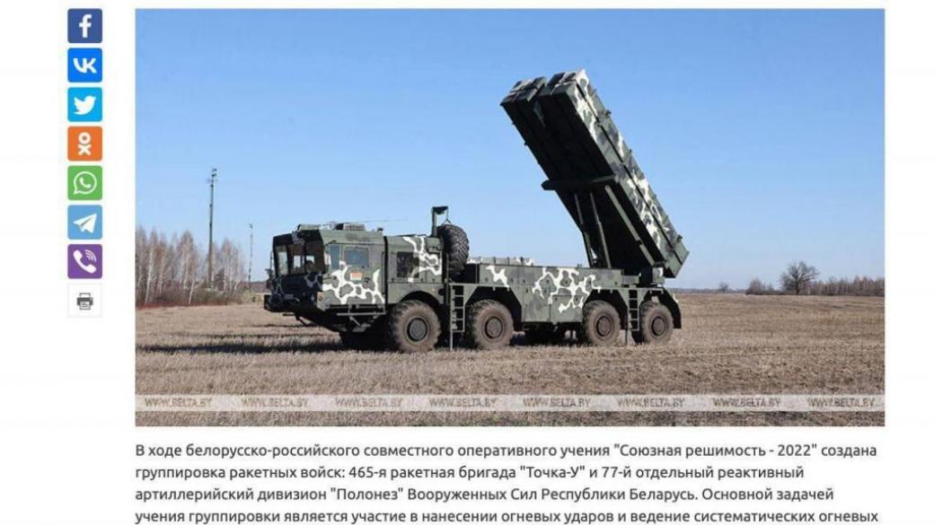 «На этом видео российские ОТРК Точка-У с буквой „V“ фиксировались на ж.д. платформах в Гомеле, 31 марта 2022 года. Российские ОТРК „Точка-У“ также фиксировались на фото и видео в других локациях», — предъявляет факты InformNapalm.