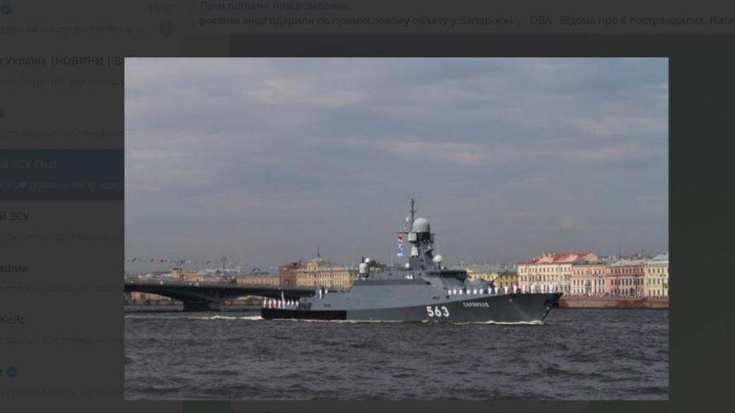 По данным источника, речь идет о малом ракетном корабле проекта 21631 "Буян-М" (является пятым кораблем серии). Инцидент произошел 7 апреля.