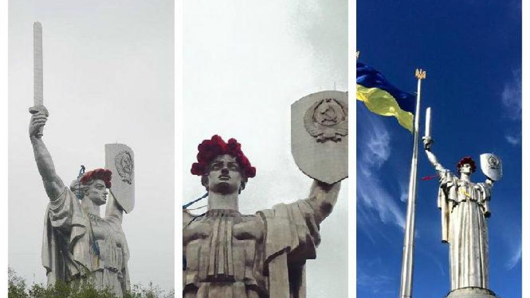 Сегодня рано утром киевляне увидели, что голова монумента «Родина-мать» украшена венком из красных маков.
