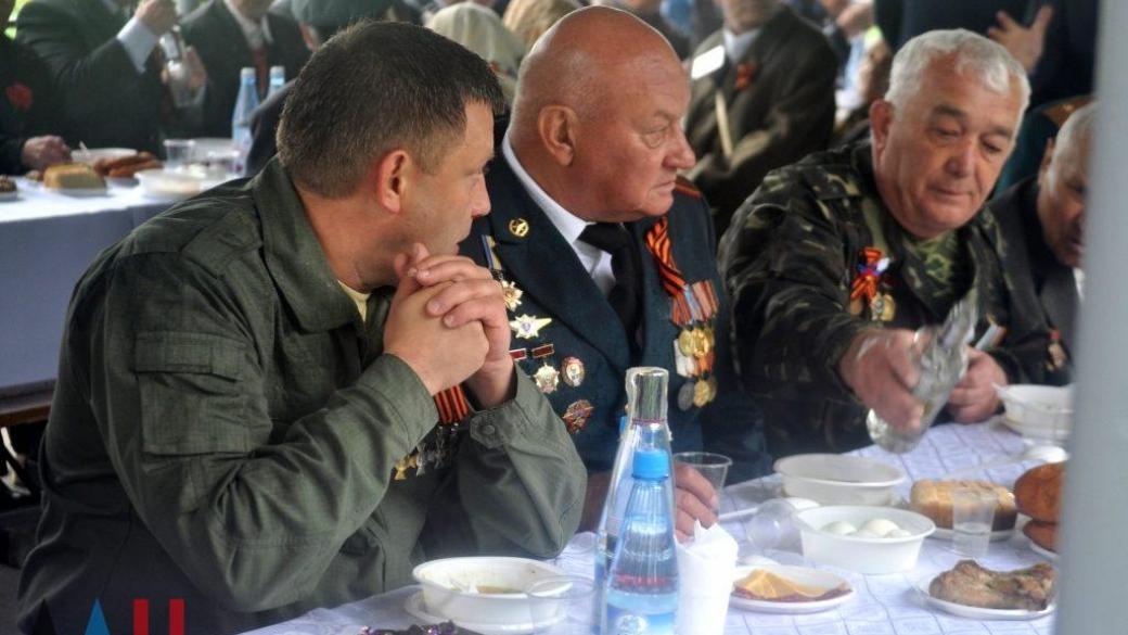 Отмечается, что «собралось порядка 15 тысяч человек», были и главари «ДНР» Александр Захарченко и Денис Пушилин.