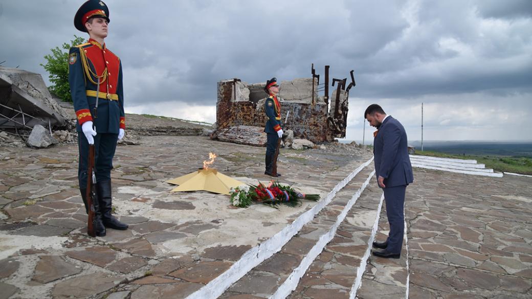 «Сегодня в честь защитников легендарной высоты Саур-Могила глава „ДНР“ Денис Пушилин возложил венок к мемориальным доскам с именами бойцов Красной армии, погибших в 1943 году, а также цветы к Вечному огню мемориального комплекса и могилам погибших в 2014 году ополченцев».