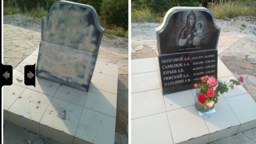 До «акта вандализма» на небольшой гранитной стелле было изображение иконы, а под ним список, состоящий из нескольких человек во главе с Мозговым. В соцсети местные жители сообщили об «издевательстве над памятником» и опубликовали фото с результатами происшествия.