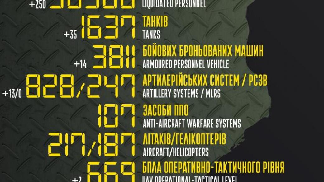 Россия за сутки потеряла в Украине почти 500 военных, самолет, вертолет и десятки танков