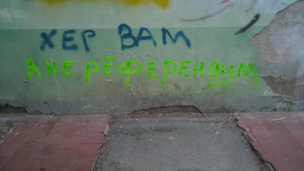 В захваченном войсками РФ Херсоне начали появляться надписи против "референдума" о присоединении к России. Об этом пишет зампредседателя Херсонского облсовета Юрий Соболевский.