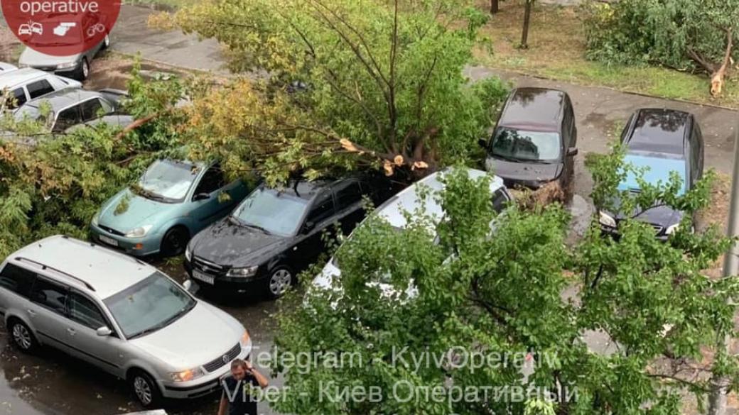 Сегодня в Киеве прошел мощный ураган, в ходе которого ветер повалил деревья и повредил дома. Кроме того, ливень залил подземные переходы и автодороги.