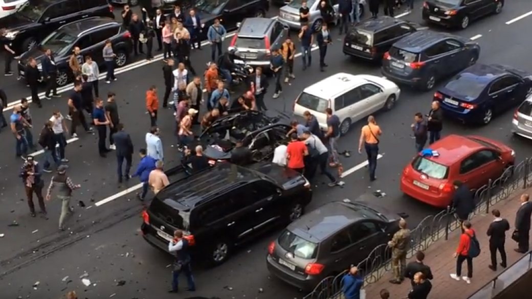 В сети появилось видео последствий сегодняшнего взрыва в центре Киева в районе Бессарабской площади, в результате которого погиб доброволец из Чечни Тимур Махаури, а также пострадали женщина и ребенок.