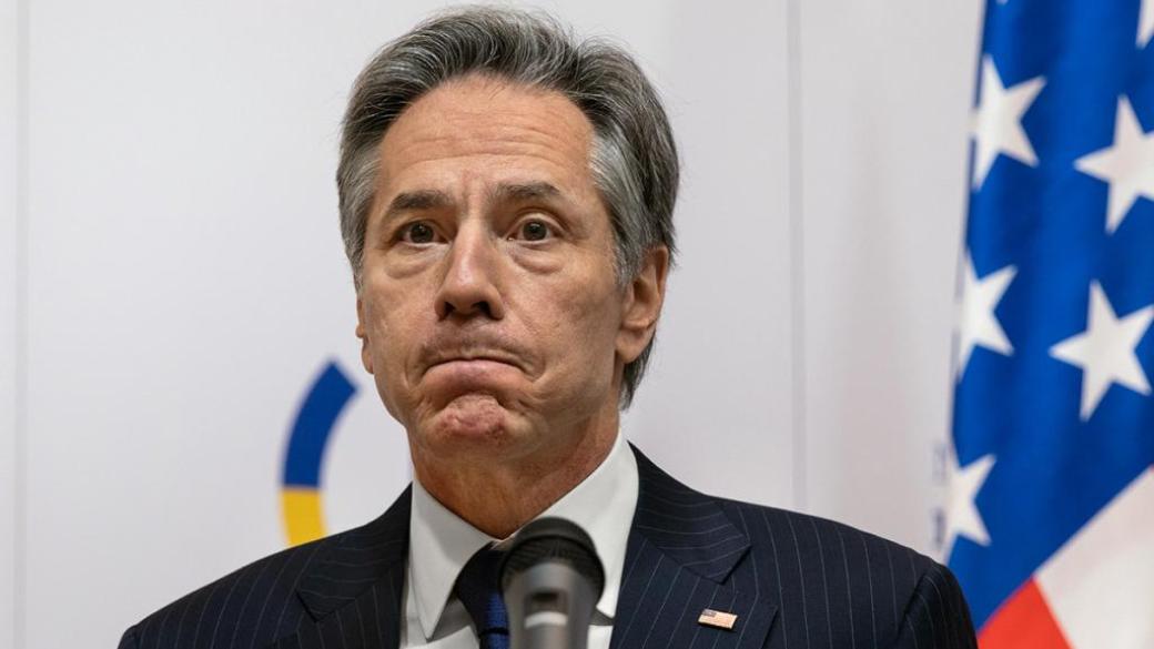 "Госсекретарь США Энтони Блинкен посещает Украину в связи с объявлением США о выделении Киеву и его соседям еще 2,6 миллиарда долларов на помощь в сфере безопасности".