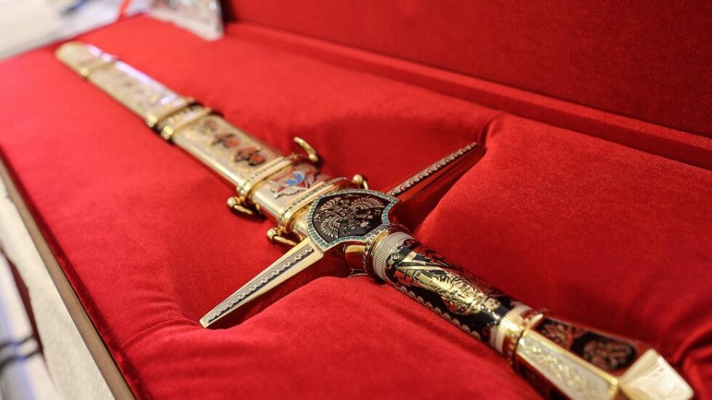 Достаточно прочитать описание «меча победителя»: «Вес каждого составляет 4,5 кг, длина клинка — 1 метр, а рукояти — 20 см. Они украшены Орденом Победы и портретами героев — от Ильи Муромца до Иосифа Сталина. На клинке выгравированы надписи: «Городу воинской славы» и фраза Александра Невского «Кто к нам с мечом придет, тот от меча и погибнет». Каждый меч имеет уникальную особенность — это выгравированный герб того города, которому он предназначен».