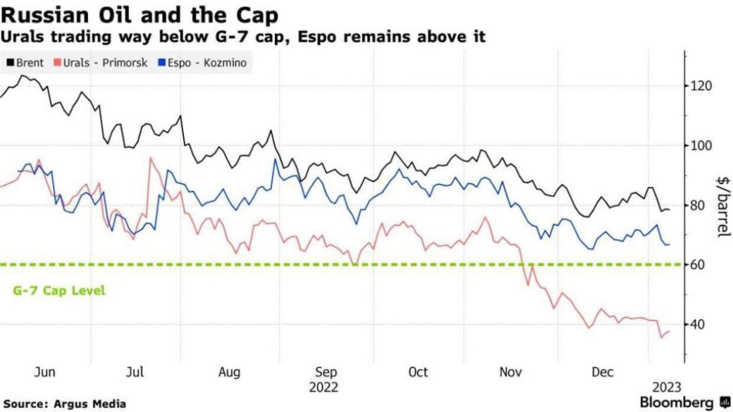 Это более чем наполовину меньше мировой цены на Brent ($78,6), и гораздо ниже введенного странами G7 потолка в $60.