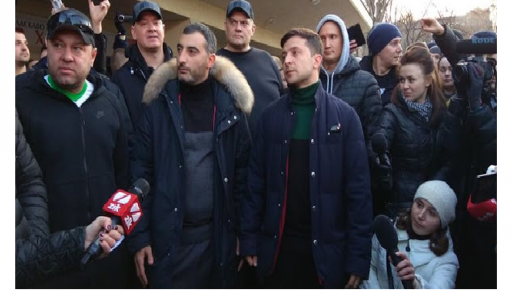 Группа активистов не пропускала шоумена внутрь здания, они держали в руках плакаты с оскорблениями в адрес кандидата в президенты Украины. Также Зеленского вслух называли клоуном и проплаченным олигархом.