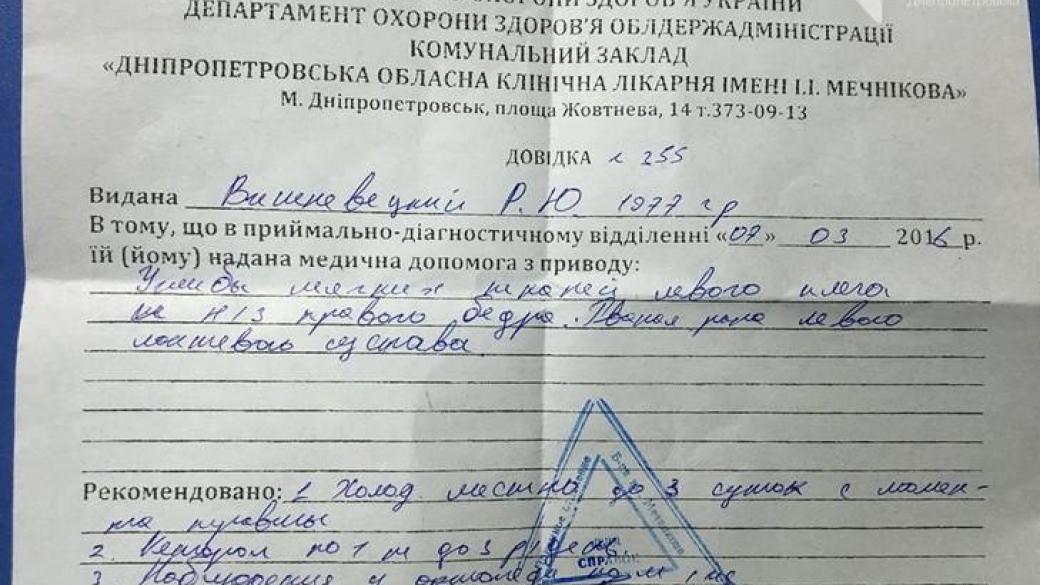 На депутата Днепропетровского городского совета напали неизвестные с битами. Об этом написал в социальных сетях Василий Холод.