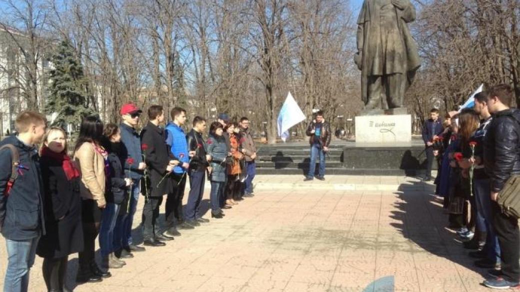Представители «молодежных организаций» «ЛНР» и «администрация» оккупированного Луганска возложили цветы к памятнику украинского поэта Тараса Шевченко.