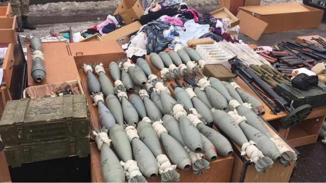 Гирцак добавил, что было обнаружено и самодельное взрывное устройство — предположительно, минометная мина, с диаметром 57 мм, массой 2,6 кг и российскими вышибными патронами, а также миномет с внутренним диаметром ствола 62 мм.