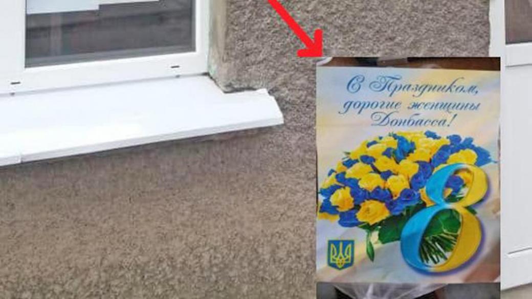 Украинские патриоты в Луганске поздравили женщин открыткой в цветах украинского флага. Соответствующее фото было опубликовано пользователем Twitter с ником «ЛНР (Колывано-Бджолария)».