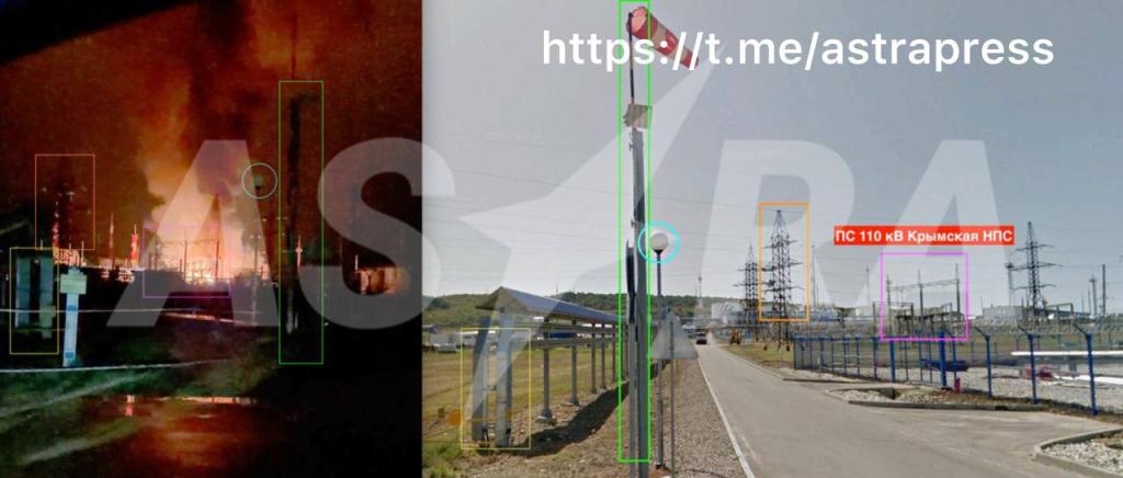 В результате атаки на территории станции вспыхнул пожар - загорелась подстанция ПС 110 кВ "Крымская НПС". Местные жители сообщали о блэкауте.
