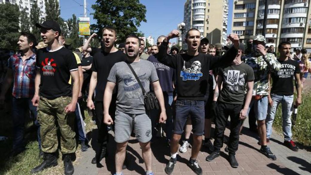 Сегодня утром, 9 мая в столице радикалы из С14 облили зеленкой и экскрементами заместителя посла Российской Федерации Константина Воробьева.