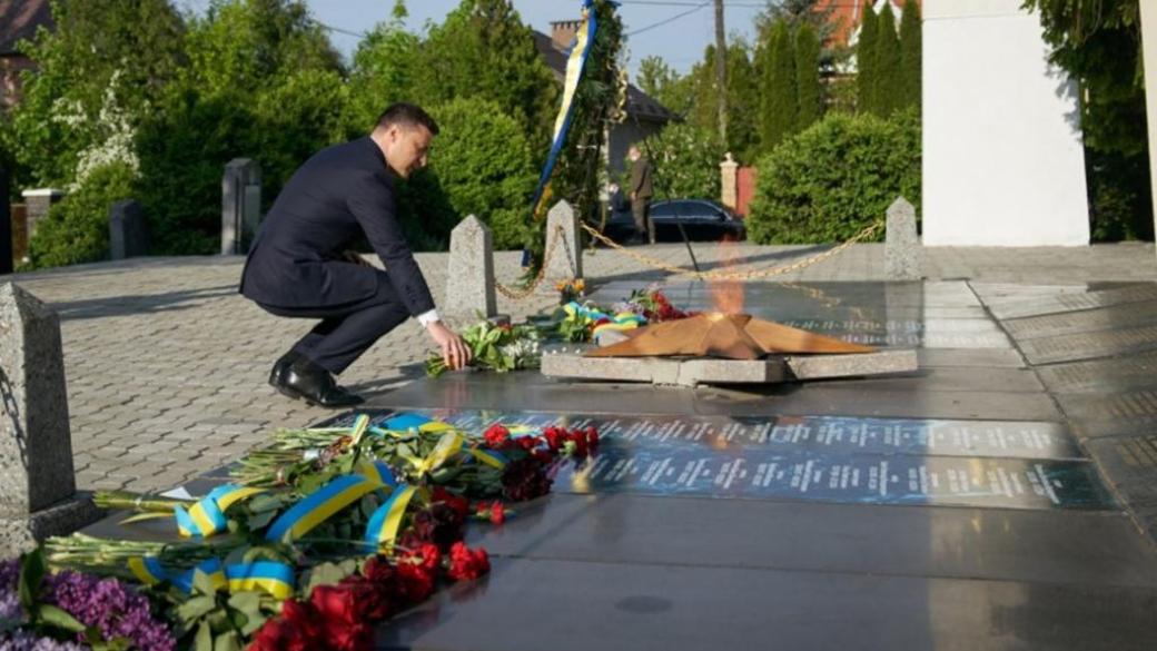 В субботу, 9 мая, президент Украины Владимир Зеленский возложил цветы к Вечному огню возложил цветы к Вечному огню и почтил память погибших во Второй мировой войне минутой молчания и почтил память погибших во Второй мировой войне минутой молчания. Об этом сообщила пресс-служба Офиса президента Украины утром 9 мая.