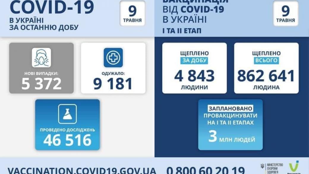 За минувшие сутки в Украине зафиксировано +5 372 новых случаев ззаражения COVID-19.