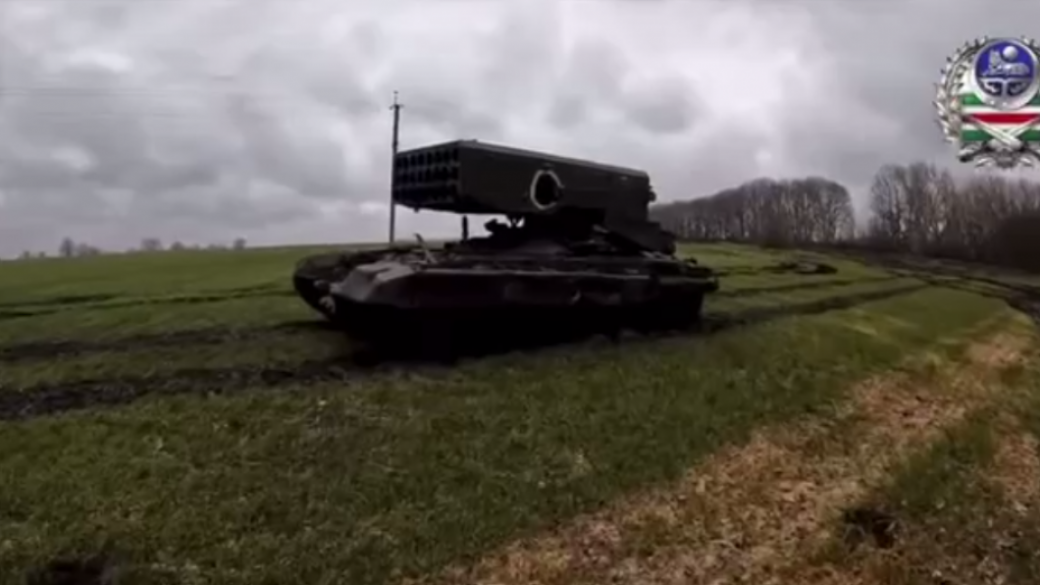 Военнослужащие Чеченского батальона Шейха Мансура опубликовали видео, на котором показали мощный трофей, российскую тяжелую огнеметную систему «Солнцепек».