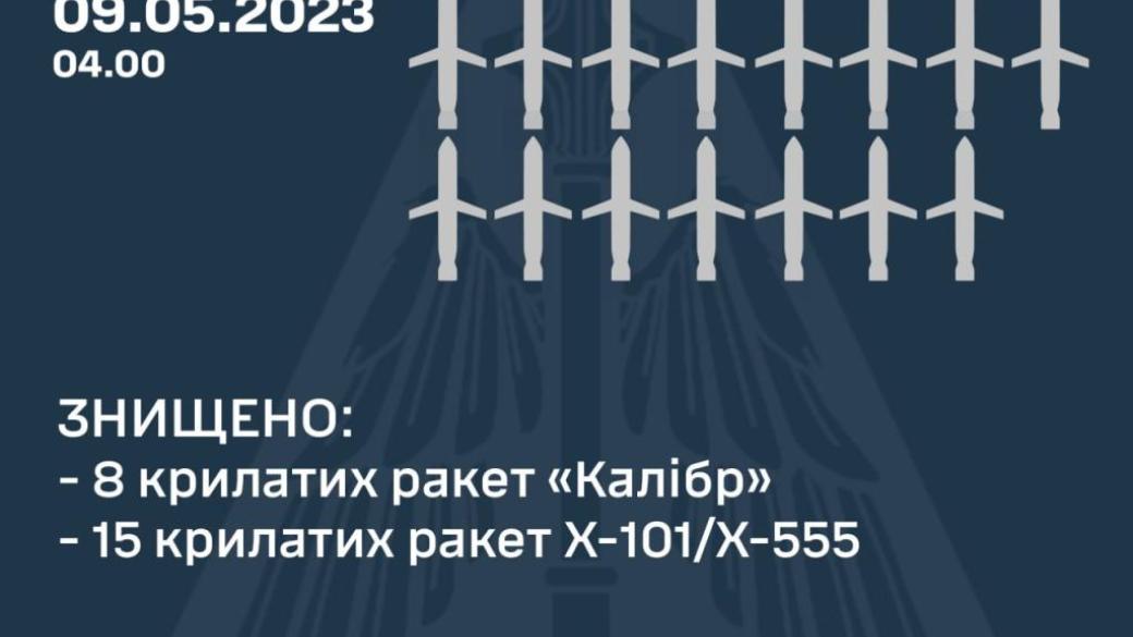 Как сообщили в воздушном командовании ВСУ, уничтожено 23 из выпущенных 25 крылатых ракет.