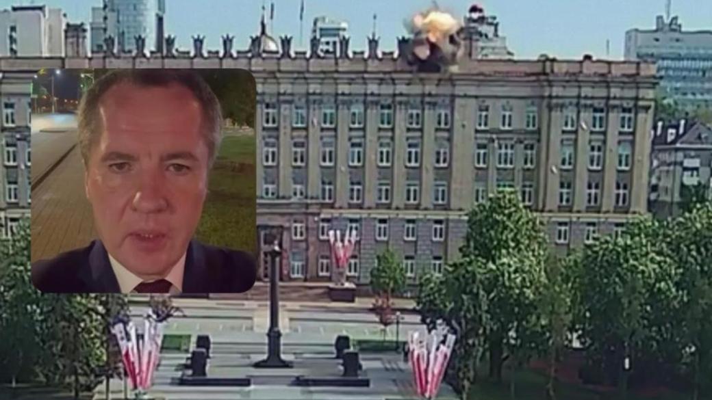 Губернатор Белгородской области Вячеслав Гладков опубликовал в своем Telegram-канале видео, на котором беспилотный летательный аппарат врезается в крышу здания. По его словам, в результате атаки ранения получили два человека - его заместитель Александр Лоренц и росгвардеец.