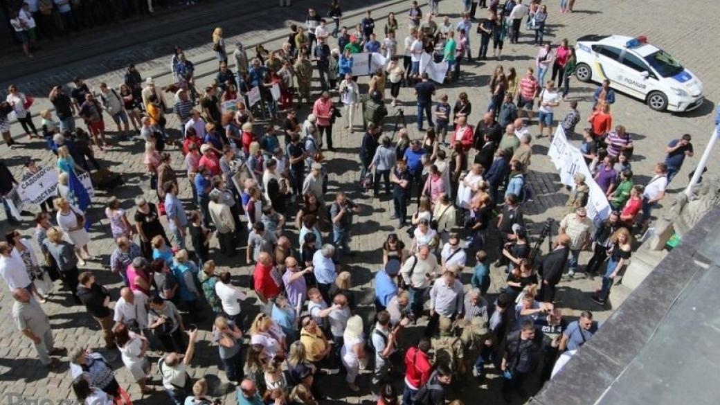 Львовяне, участвовавшие в акции протеста перед зданием местного горсовета, подняли сразу несколько тем.