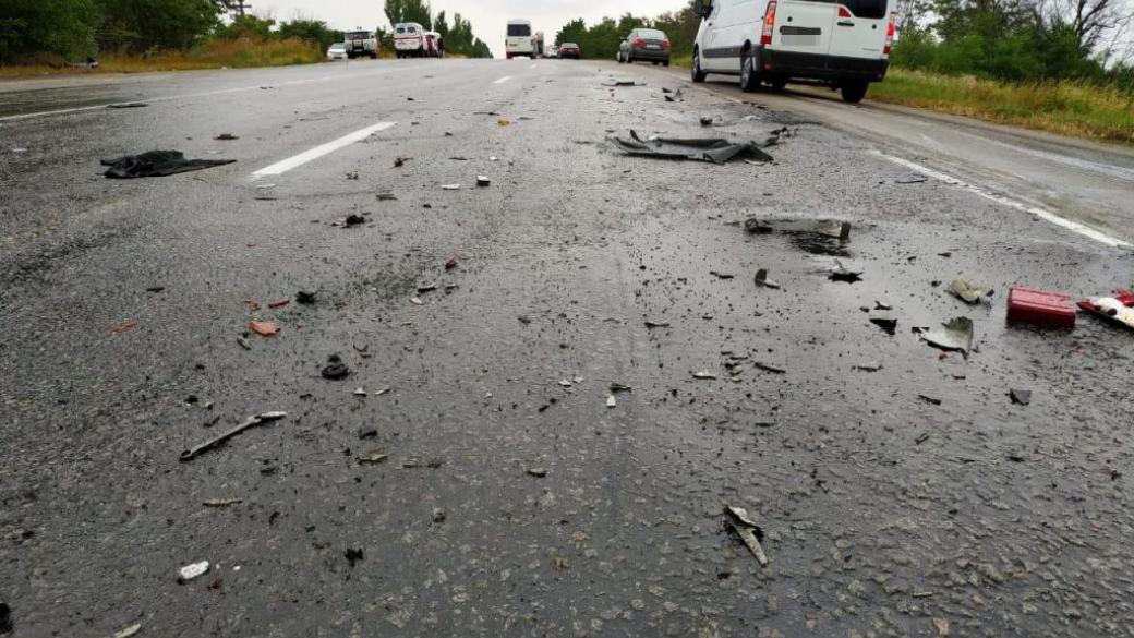 В Васильковском районе (Запорожская область) на трассе Харьков — Симферополь произошло столкновения маршрутного микроавтобуса Mercedes Sprinter с легковым автомобилем Ford Sierra.
