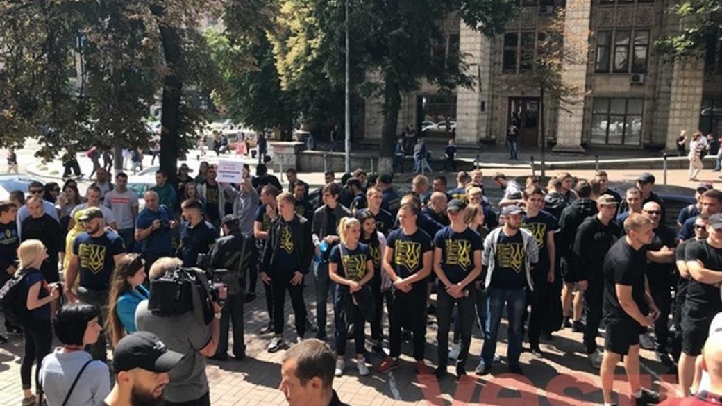У здания Национального совета по вопросам телевидения и радиовещания представители Национального корпуса проводят акцию протеста.