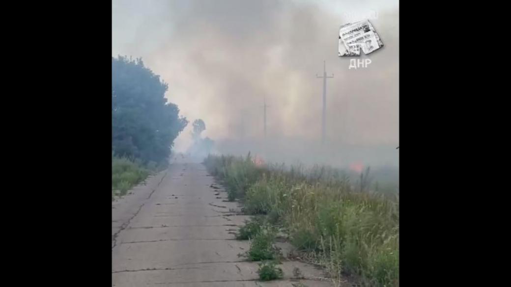 В результате обстрела загорелось поле в районе бывшей трикотажной фабрики в Горловке.