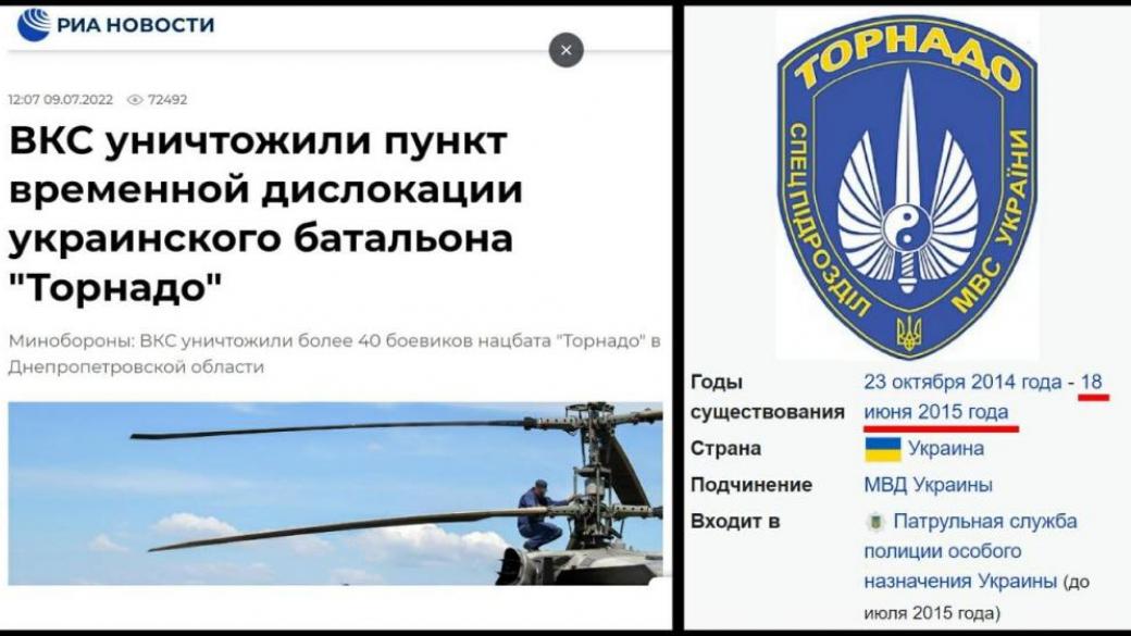 В России заявили об уничтожении бойцов некоего, несуществующего в Украине, батальона Торнадо.