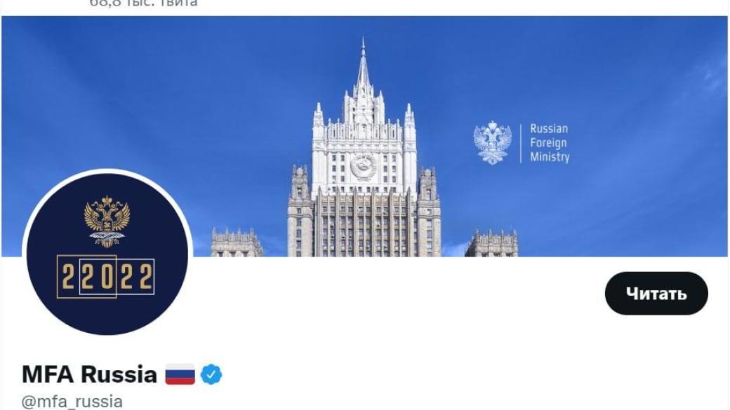 Аккаунт Twitter МИД РФ на английском языке заморожен из-за недостоверной информации с 5 августа на 7 дней.