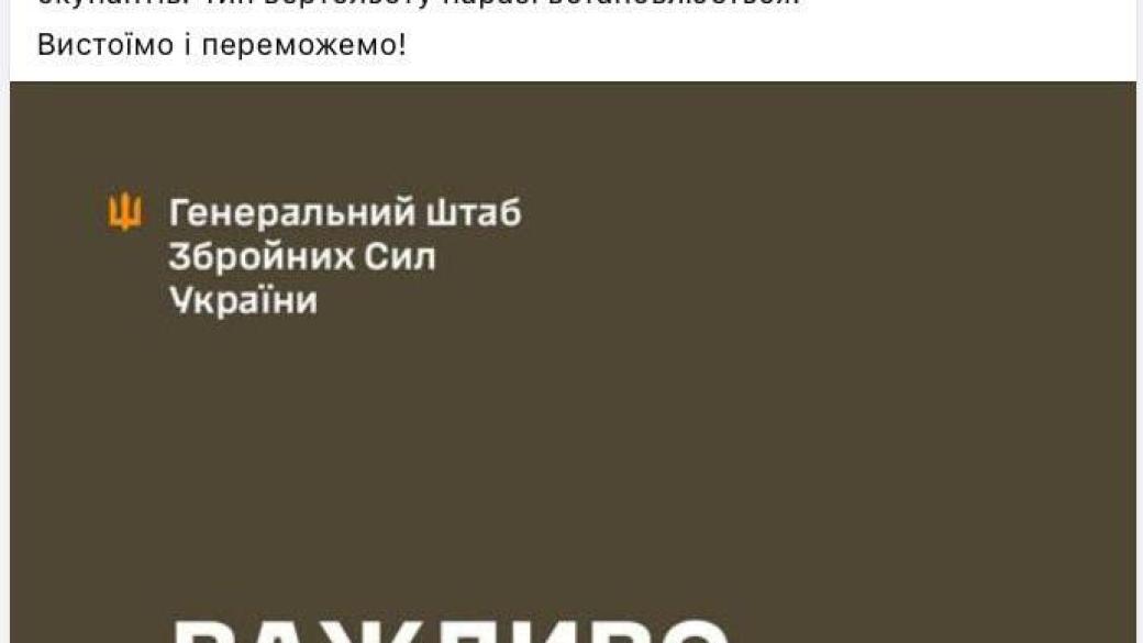 По сообщению Генштаба ВСУ, у врага "минус" еще одна "пташка".