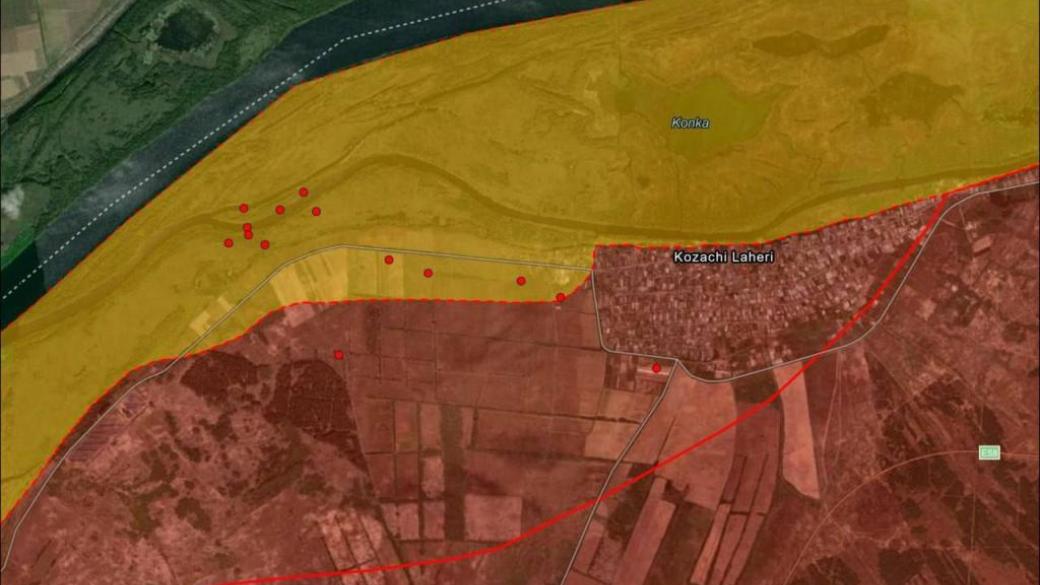 В районе населенного пункта Казачьи Лагеря высадились 7 катеров (по 6-7 человек). Они прорвали оборонительные рубежи РФ и продвинулись на 800 м вглубь. Но пока неясно, установили ли свое присутствие на берегу, пишут эксперты.