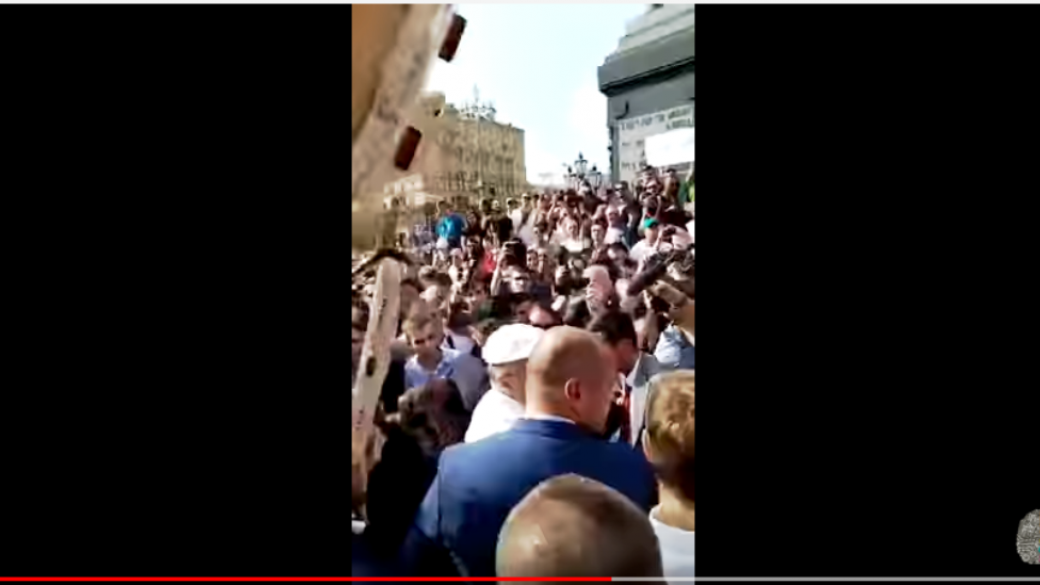 Протестующие на Пушкинской площади спросили Жириновского о его отношении к пенсионной реформе, на что скандальный политик уточнил, что он и его партия голосовали против нее, а в реформе виноваты коммунисты. Однако, толпа начала скандировать: «Клоун!» и «Позор!». СМИ отмечают: «Жириновский устроил драку на Пушкинской. Потому что кто-то назвал его г**ном».