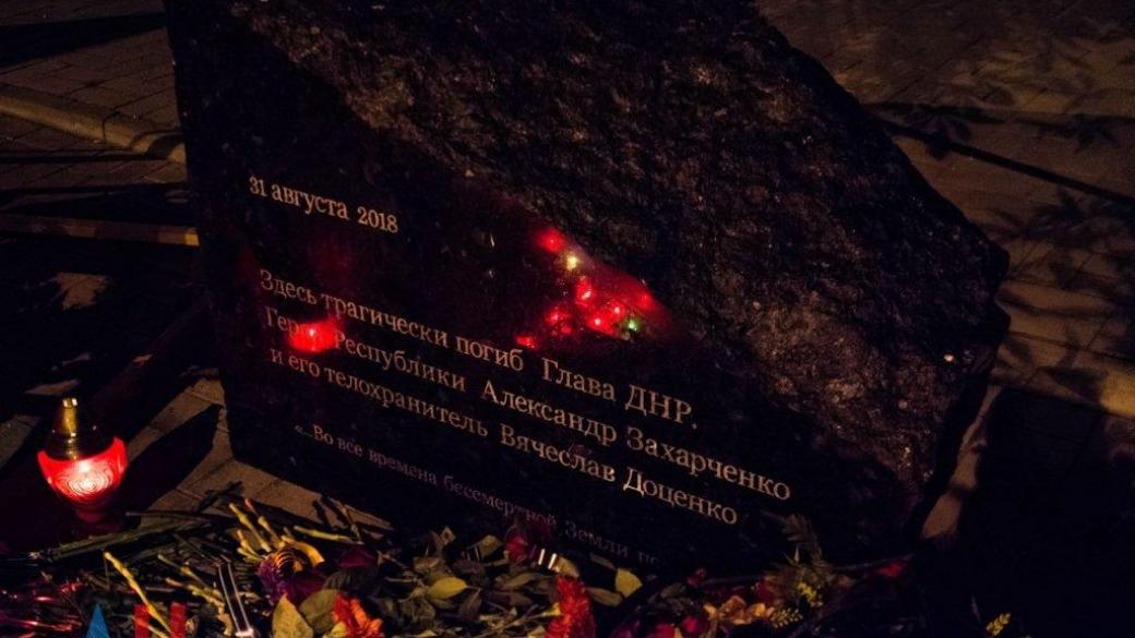 В оккупированном Донецке возле кафе «Сепар» на месте убийства главаря «ДНР» Александра Захарченко торжественно установили памятный камень, на котором в надписи есть орфографическая ошибка.