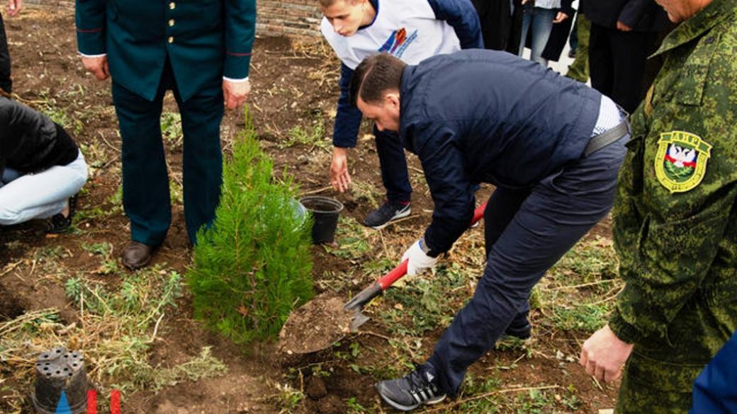 Врио главы «ДНР» Денис Пушилин сегодня высадил деревья на территории мемориального комплекса «Саур-Могила».