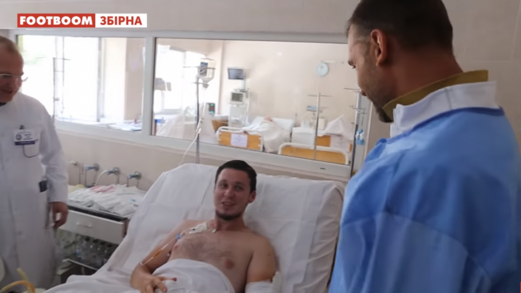 В госпиталь пришли главный тренер Андрей Шевченко, его ассистент Александр Шовковский, футболисты Андрей Лунин, Евгений Коноплянка и Андрей Пятов, от имени УАФ (бывшей ФФУ) присутствовал Андрей Павелко и вице-президент Вадим Костюченко.