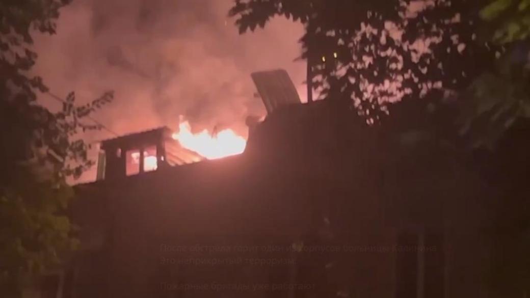Ресурсы публикуют видео горящей больницы. По словам очевидцев, после прямого попадания в здание даже в соседних домах выбило окна. Информация о пострадавших выясняется.