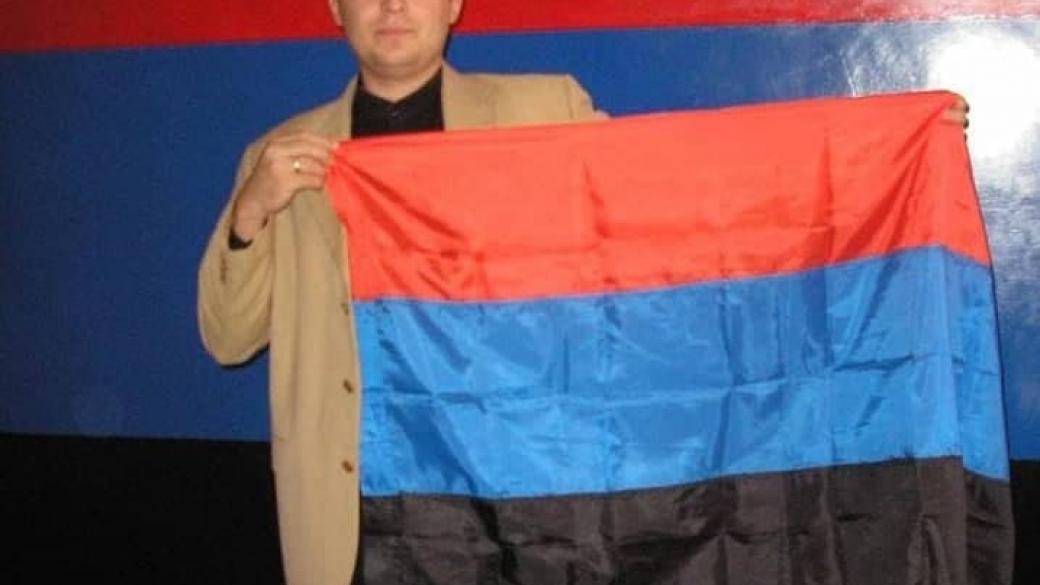 Он утверждает, что 8 октября 1991 года, на площади Ленина в Донецке впервые был поднят флаг так называемого «интердвижения Донбасса» в красно-сине-черных цветах.