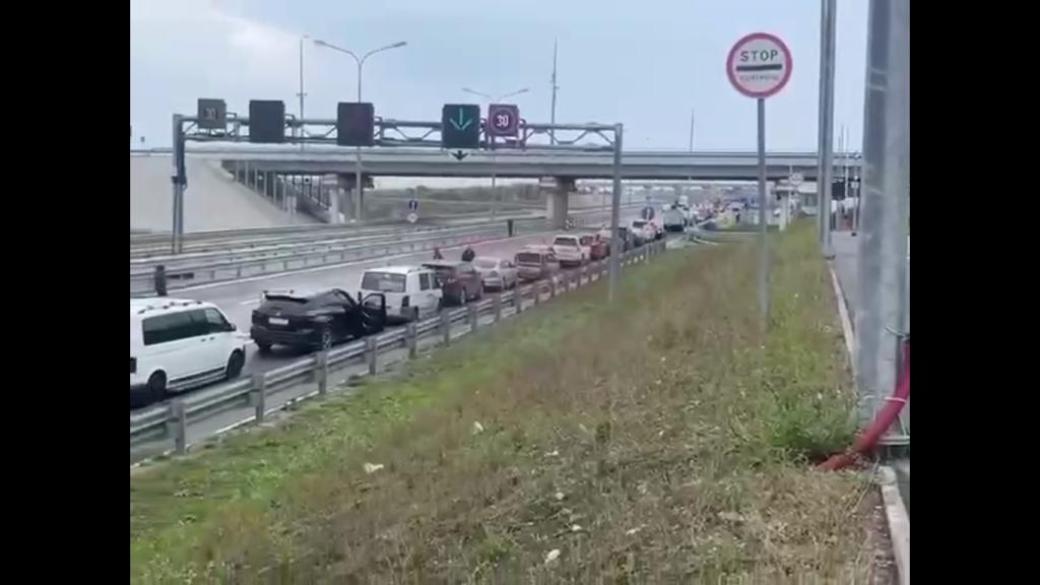 Перед Крымским мостом очередь из желающих покинуть Крым выросла до шести километров.