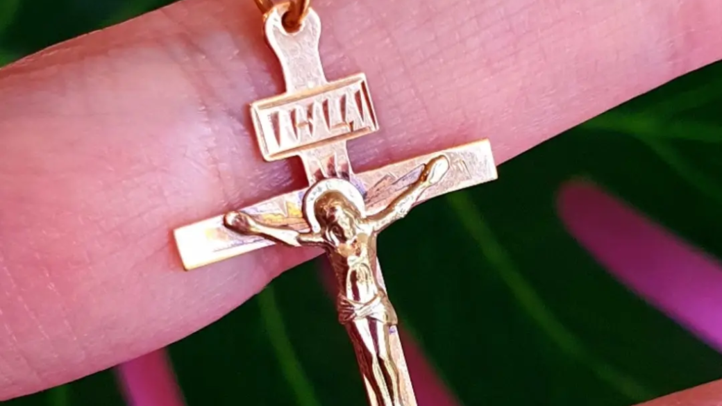 Изображение распятого Иисуса на аксессуаре выражает благоговейную радость и символизирует его победу над смертью и искупление грехов человечества. На изображении видно, что ноги Иисуса прибиты двумя гвоздями — это важное различие между православным и католическим мужским крестиком.