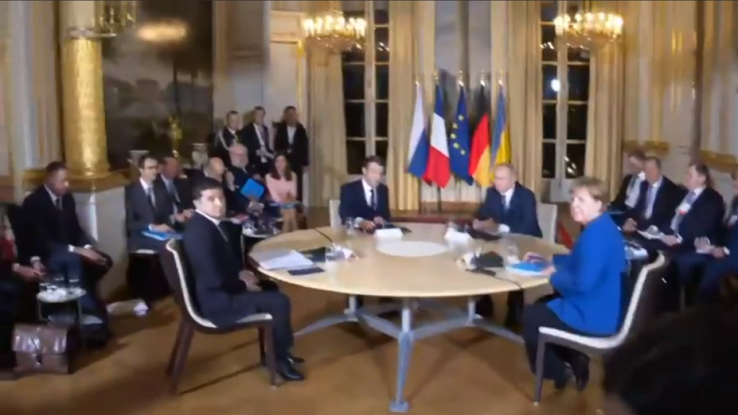В частности, он отметил, что Путин и Зеленский перед началом переговоров в нормандском формате обменялись рукопожатием. В то же время, СМИ отмечают, что публичного рукопожатия президентов не было.